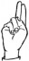 На ћирилици написано КОСТАДИН ЛЕШЕВИЋ састоји се из 15 слова [?]. Исписано ћириличном једноручном азбуком за глувонеме: